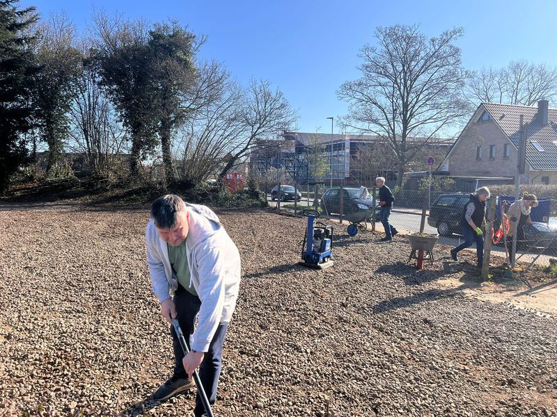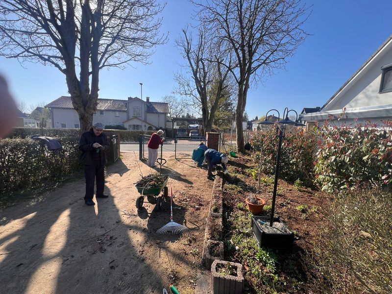 Heute haben wir gemeinsam gearbeitet, und es war wirklich eine tolle Truppe. Die Stimmung war super und alle haben gut mit angepackt. Zusammen haben wir das Tor gestrichen und den Parkplatz neu gemacht, was richtig gut vorangegangen ist. Außerdem haben wir die Brombeeren zurückgeschnitten, sodass jetzt wieder alles ordentlicher aussieht.